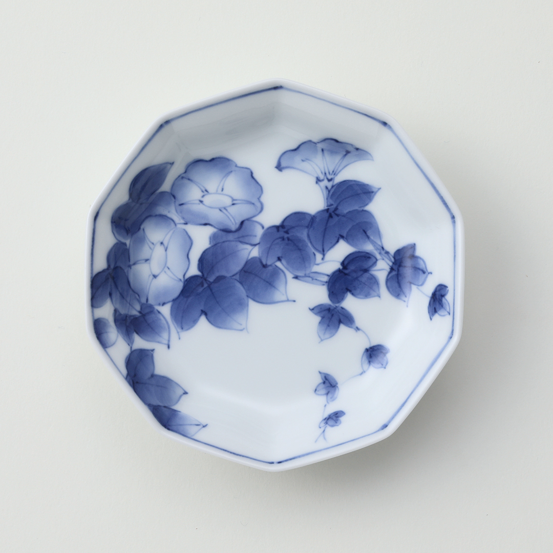 朝顔豆皿 [十角]102mm 嘉泉窯かせんがま 住所 長崎県佐世保市三川内町685 TEL/FAX 0956-30-8201/0956-30-8202 URL http://www.kasengama.com Mail info@kasengama.com