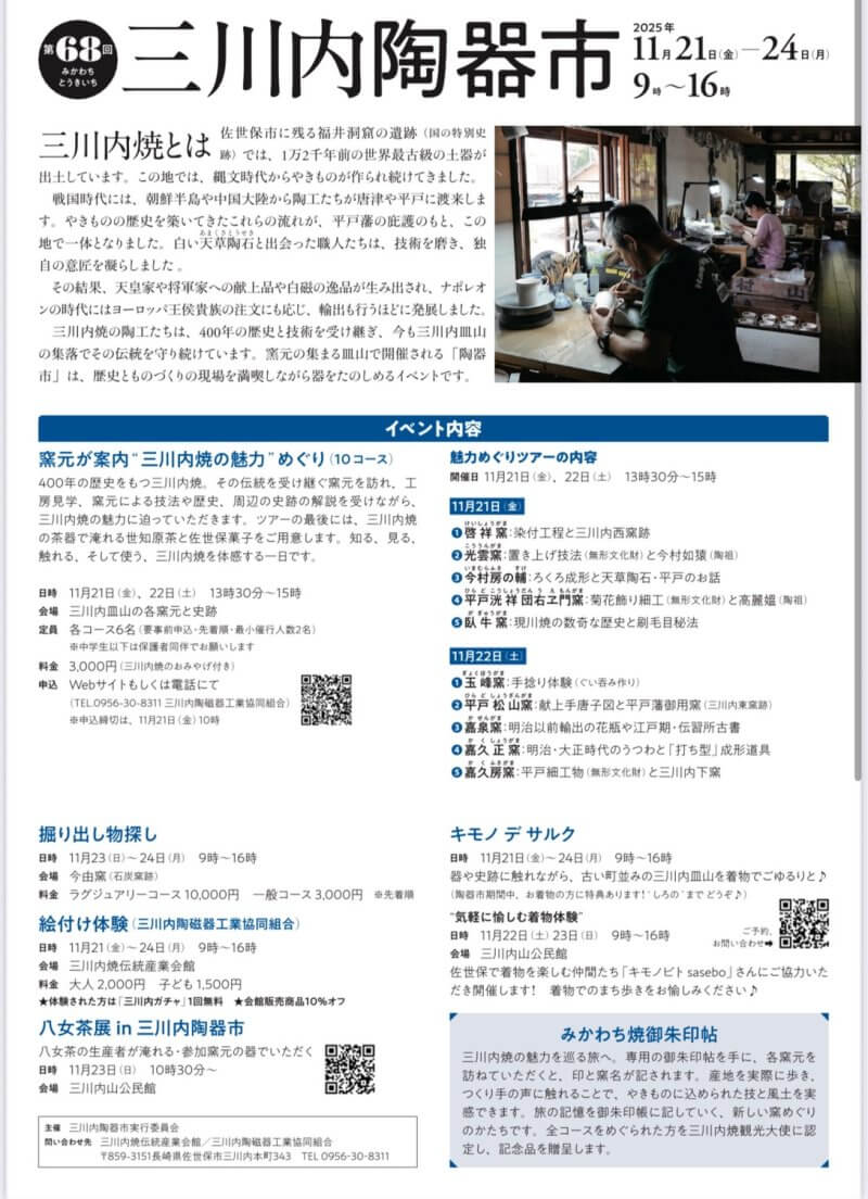 400 年の長い歴史をもつ三川内焼を、 知って、触れて、感じる4日間です。 楽しいイベントが目白押し!